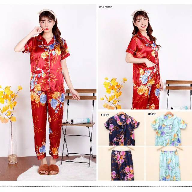 Jual Diamond2 Piyama Satin Bunga Import Baju Tidur Piyama Pajamas Baju Tidur Satin Shopee Indonesia